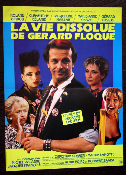 23" x 16" movie poster from THE DEBAUCHED LIFE OF GÉRARD FLOQUE (1987), directed by Georges Lautner with Roland Giraud, Marie-Anne Chazel, Clémentine Célarié, Jacqueline Maillan, Gérard Rinaldi, Mathilda May (more on the Imdb)