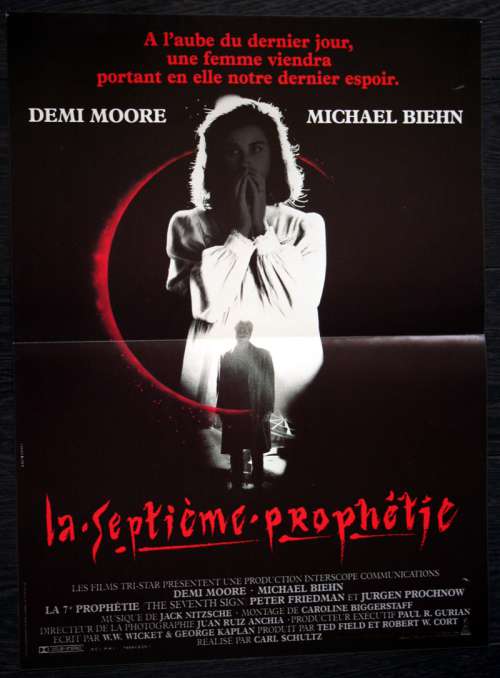 23" x 16" movie poster from THE SEVENTH SIGN (1988), directed by Carl Schultz with Demi Moore, Michael Biehn, Jürgen Prochnow, Peter Friedman, Manny Jacobs, John Taylor (more on the Imdb)