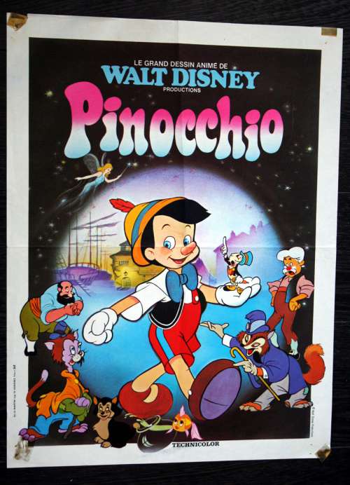 23" x 16" movie poster from PINOCCHIO (1940), directed by Norman Ferguson, T. Hee with Mel Blanc, Don Brodie, Walter Catlett, Marion Darlington, Frankie Darro, Cliff Edwards (more on the Imdb)