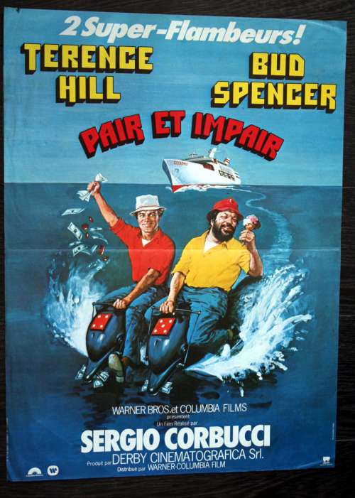 23" x 16" movie poster from TRINITY: GAMBLING FOR HIGH STAKES (1978), directed by Sergio Corbucci with Terence Hill, Bud Spencer, Luciano Catenacci, Marisa Laurito, Kim McKay, Salvatore Borghese (more on the Imdb)
