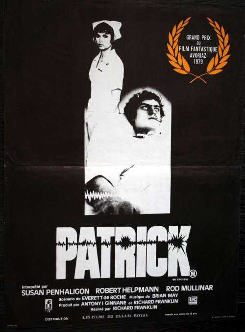 23" x 16" movie poster from PATRICK (1978), directed by Richard Franklin with Susan Penhaligon, Robert Helpmann, Rod Mullinar, Bruce Barry, Julia Blake, Helen Hemingway (more on the Imdb)