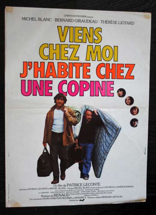 23" x 16" movie poster from VIENS CHEZ MOI, J'HABITE CHEZ UNE COPINE (1981), directed by Patrice Leconte with Michel Blanc, Bernard Giraudeau, Thérèse Liotard, Anémone, Sylvie Granotier, Marie-Anne Chazel (more on the Imdb)