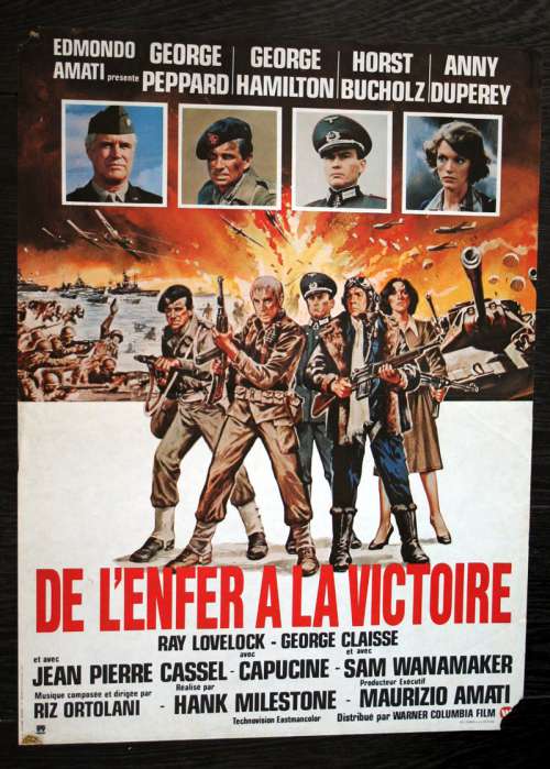 23" x 16" movie poster from FROM HELL TO VICTORY (1979), directed by Umberto Lenzi with George Peppard, George Hamilton, Horst Buchholz, Anny Duperey, Jean-Pierre Cassel (more on the Imdb)