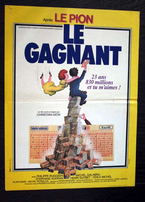 23" x 16" movie poster from LE GAGNANT (1979), directed by Christian Gion with Philippe Ruggieri, Michel Galabru, Stéphane Audran, Odile Michel, Henri Guybet (more on the Imdb)