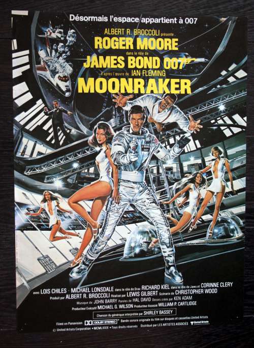 23" x 16" movie poster from MOONRAKER (1979), directed by Lewis Gilbert with Roger Moore, Lois Chiles, Michael Lonsdale, Richard Kiel, Corinne Cléry, Bernard Lee (more on the Imdb)