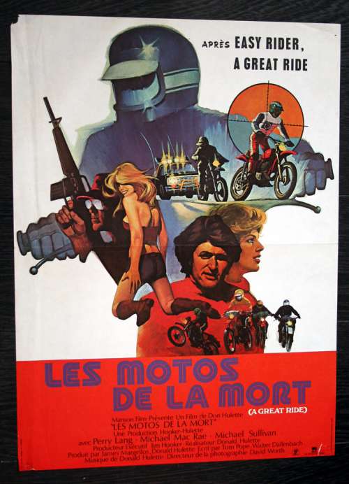 23" x 16" movie poster from THE GREAT RIDE (1979), directed by Don Hulette with Marc Alaimo, Ernie Garrett, John Hoyt, Perry Lang, Michael MacRae, Michael Sullivan (more on the Imdb)