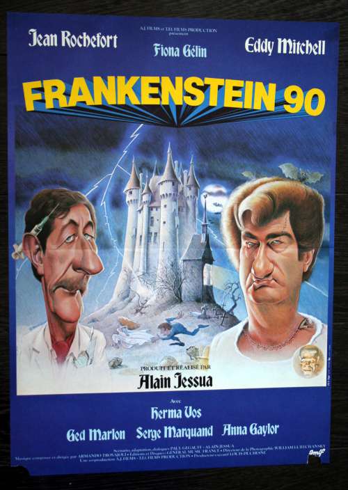 23" x 16" movie poster from FRANKENSTEIN 90 (1984), directed by Alain Jessua with Jean Rochefort, Eddy Mitchell, Fiona Gélin, Herma Vos (more on the Imdb)