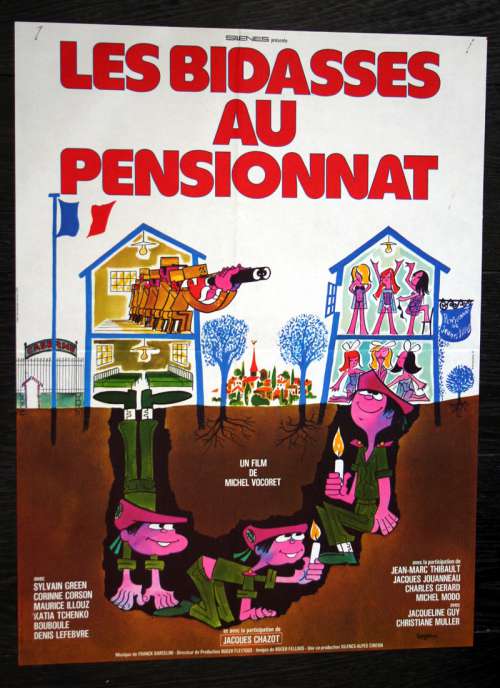 23" x 16" movie poster from LES BIDASSES AU PENSIONNAT (1978), directed by Michel Vocoret with Sylvain Chamarande (green), Corinne Corson, Maurice Illouz, Katia Tchenko, Bouboule, Denis Lefebvre (more on the Imdb)