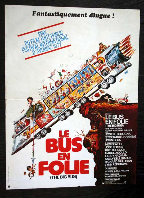 23" x 16" movie poster from THE BIG BUS (1976), directed by James Frawley with Joseph Bologna, Stockard Channing, John Beck, Rene Auberjonois, Ned Beatty (more on the Imdb)