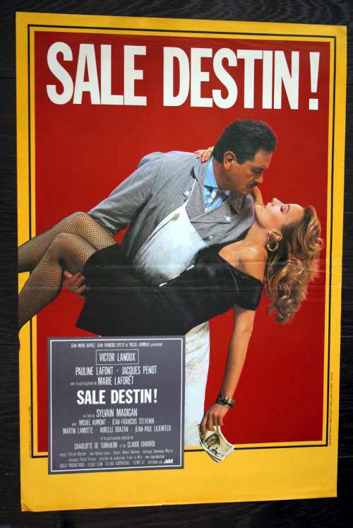 23" x 16" movie poster from ROTTEN FATE! (1987), directed by Sylvain Madigan with Victor Lanoux, Pauline Lafont, Jacques Penot, Marie Laforêt, Michel Aumont, Martin Lamotte (more on the Imdb)