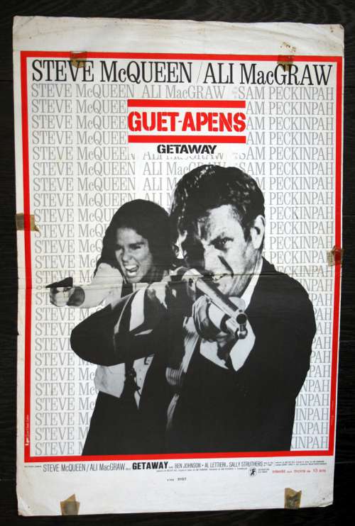 23" x 16" movie poster from THE GETAWAY (1972), directed by Sam Peckinpah with Steve McQueen, Ali MacGraw, Ben Johnson, Sally Struthers, Al Lettieri (more on the Imdb)