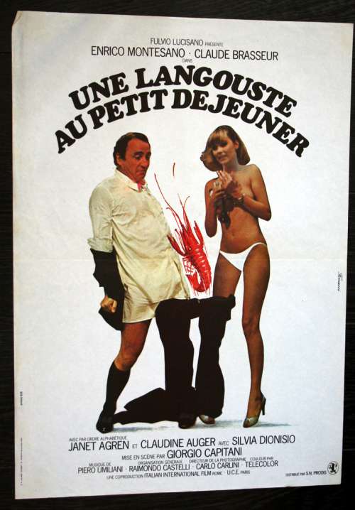 23" x 16" movie poster from LOBSTER FOR BREAKFAST (1979), directed by Giorgio Capitani with Enrico Montesano, Claude Brasseur, Janet Agren, Claudine Auger, Silvia Dionisio, Roberto Della Casa (more on the Imdb)