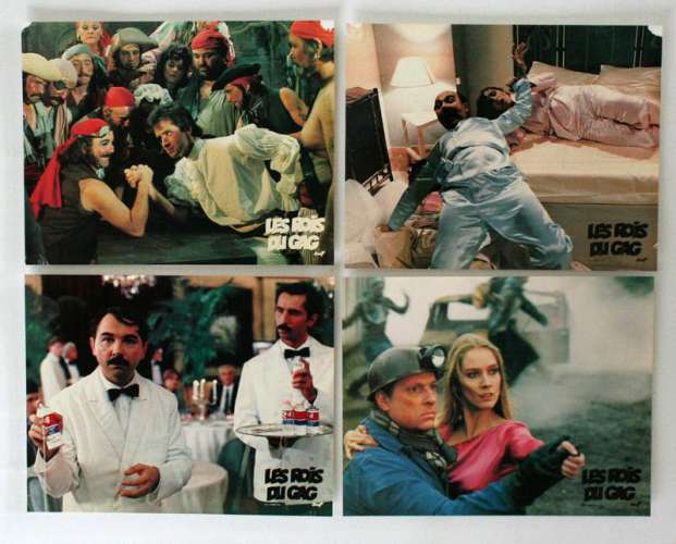 14 movie stills from LES ROIS DU GAG (1985), directed by Claude Zidi with Michel Serrault, Gérard Jugnot, Thierry Lhermitte, Macha Méril, Mathilda May, Didier Kaminka (more on the Imdb)