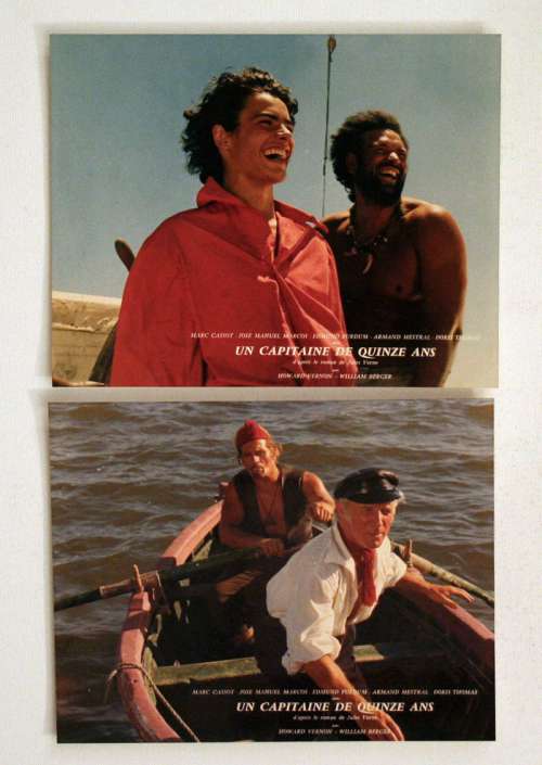 2 movie stills from FIFTEEN YEAR OLD CAPTAIN (1974), directed by Jesús Franco with José Manuel Marcos, Edmund Purdom, Marc Cassot, Doris Thomas, Howard Vernon, Armand Mestral (more on the Imdb)