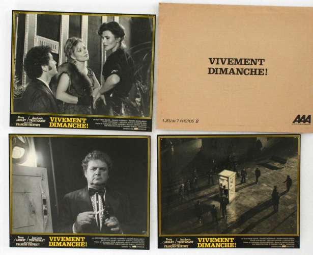 7 movie stills from FINALLY, SUNDAY! (1983), directed by François Truffaut with Fanny Ardant, Jean-Louis Trintignant, Jean-Pierre Kalfon, Philippe Laudenbach, Philippe Morier-Genoud, Xavier Saint-Macary (more on the Imdb)