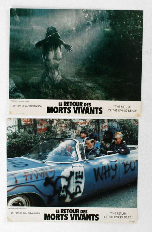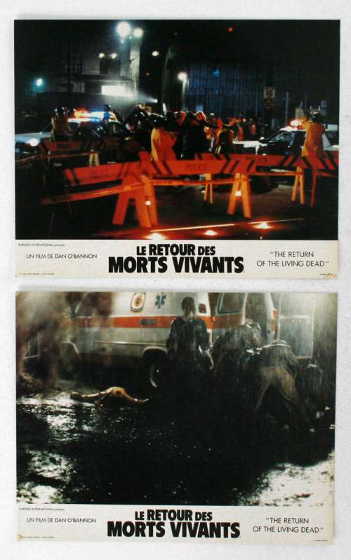 12 movie stills from THE RETURN OF THE LIVING DEAD (1985), directed by Dan O'Bannon with Clu Gulager, James Karen, Don Calfa, Thom Mathews, Beverly Randolph, John Philbin (more on the Imdb)