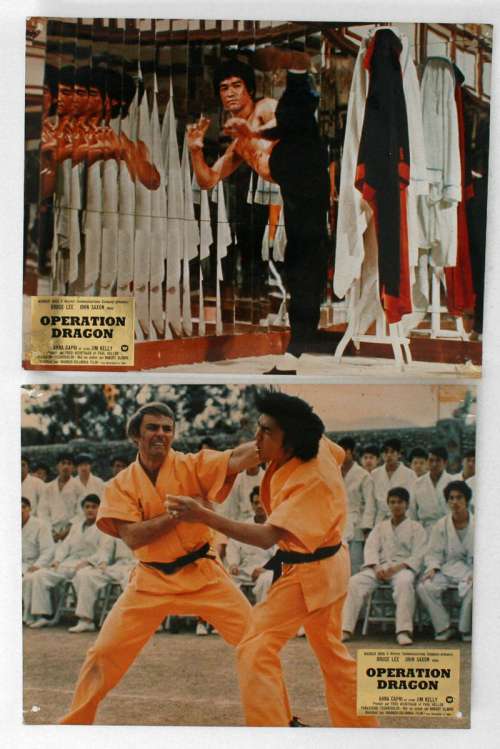4 movie stills from ENTER THE DRAGON (1973), directed by Robert Clouse with Bruce Lee, John Saxon, Jim Kelly, Ahna Capri, Kien Shih, Robert Wall (more on the Imdb)