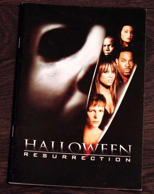 Press kit from HALLOWEEN: RESURRECTION (2002), directed by Rick Rosenthal with Jamie Lee Curtis, Brad Loree, Busta Rhymes, Bianca Kajlich, Thomas Ian Nicholas, Ryan Merriman (more on the Imdb)