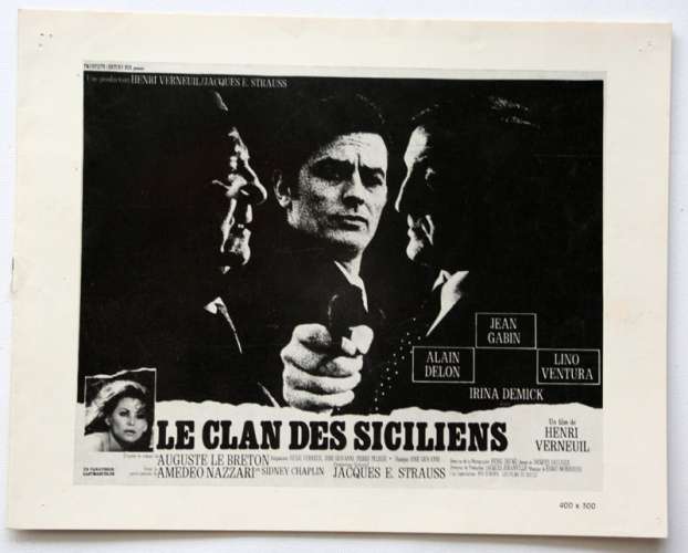 Promotional material from THE SICILIAN CLAN (1969), directed by Henri Verneuil with Jean Gabin, Alain Delon, Lino Ventura, Irina Demick (more on the Imdb)