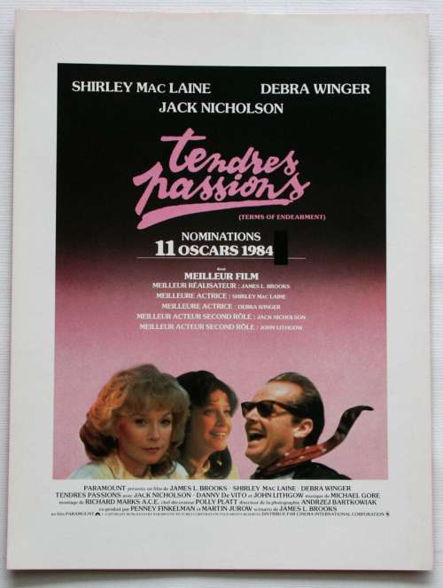Synopsis from TERMS OF ENDEARMENT (1983), directed by James L. Brooks with Shirley MacLaine, Debra Winger, Jack Nicholson, Danny DeVito, Jeff Daniels, John Lithgow (more on the Imdb)