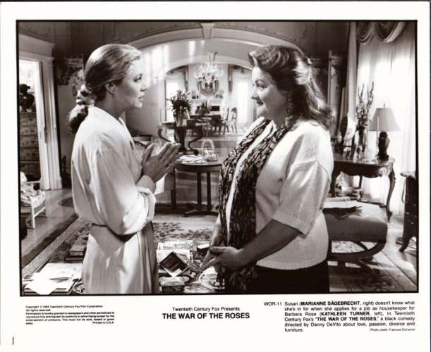 Press still from THE WAR OF THE ROSES (1989), directed by Danny DeVito with Michael Douglas, Kathleen Turner, Danny DeVito, Marianne Sägebrecht, Sean Astin (more on the Imdb)