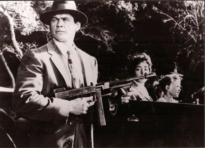 Press still from MACHINE-GUN KELLY (1958), directed by Roger Corman with Charles Bronson, Susan Cabot, Morey Amsterdam, Richard Devon, Jack Lambert (more on the Imdb)