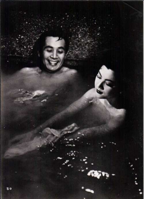 Press still from FLOATING CLOUDS (1955), directed by Mikio Naruse with Hideko Takamine, Masayuki Mori, Mariko Okada, Isao Yamagata, Chieko Nakakita (more on the Imdb)