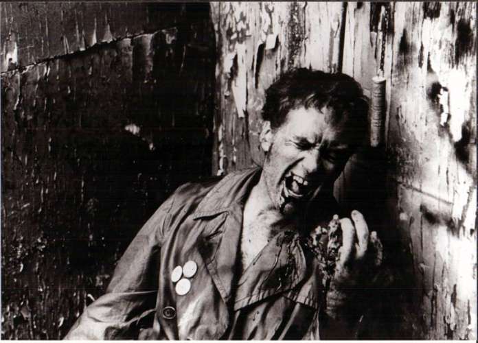 Press still from STREET TRASH (1987), directed by James M. Muro with Mike Lackey, Bill Chepil, Vic Noto, Mark Sferrazza, Jane Arakawa (more on the Imdb)