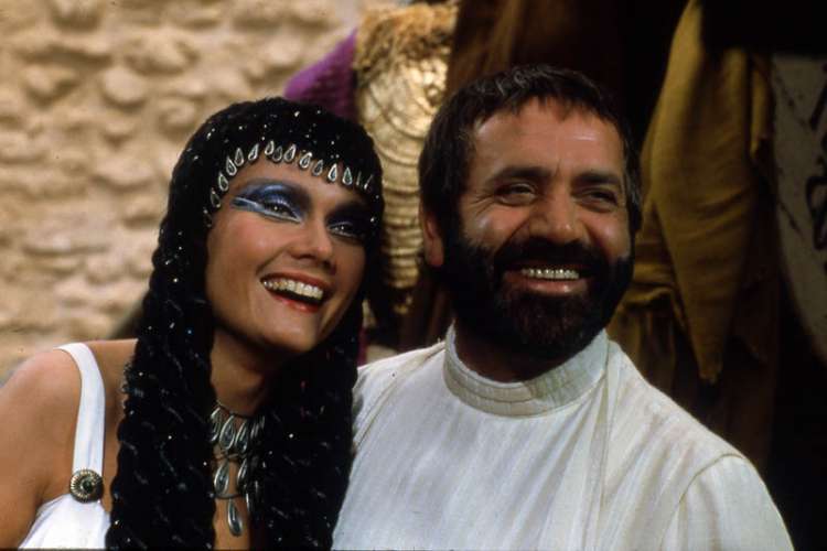 Slide from QUARTER TO TWO BEFORE JESUS CHRIST (1982), directed by Jean Yanne with Coluche, Michel Serrault, Jean Yanne, Françoise Fabian, Michel Auclair (more on the Imdb)