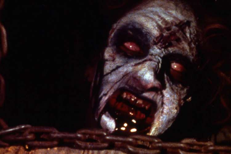Slide from THE EVIL DEAD (1981), directed by Sam Raimi with Bruce Campbell, Ellen Sandweiss, Richard DeManincor, Betsy Baker, Theresa Tilly (more on the Imdb)