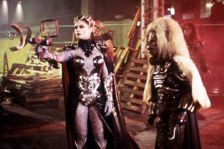 Slide from MASTERS OF THE UNIVERSE (1987), directed by Gary Goddard with Dolph Lundgren, Frank Langella, Meg Foster, Billy Barty, Courteney Cox (more on the Imdb)
