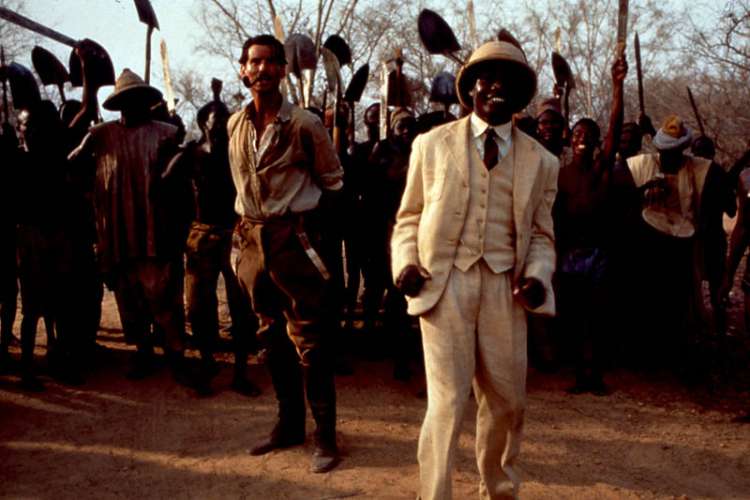 6 slides from MISTER JOHNSON (1990), directed by Bruce Beresford with Maynard Eziashi, Pierce Brosnan, Edward Woodward, Beatie Edney, Denis Quilley (more on the Imdb)