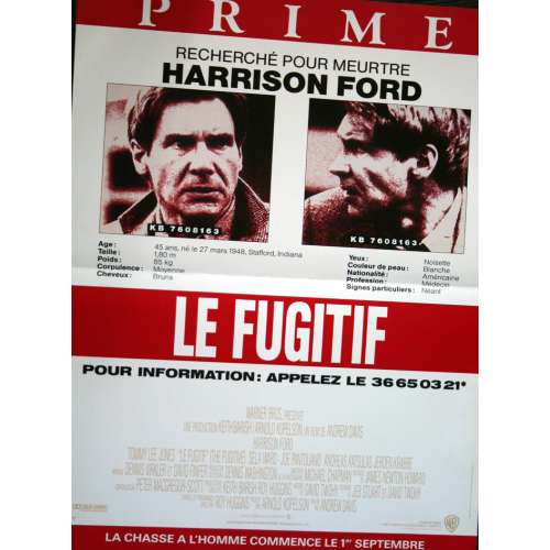 23" x 16" movie poster from THE FUGITIVE (1993)