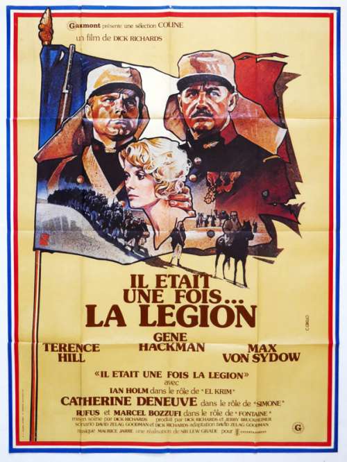 Affiche de cinéma 120 x 160 du film IL ÉTAIT UNE FOIS LA LÉGION (1977), réalisé par Dick Richards avec Gene Hackman, Terence Hill, Catherine Deneuve, Max von Sydow, Ian Holm (plus sur Imdb)