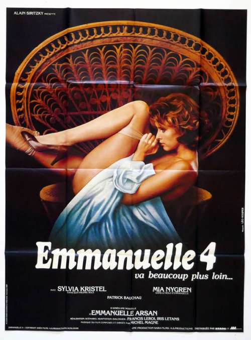 Affiche de cinéma 120 x 160 du film EMMANUELLE 4, VA BEAUCOUP PLUS LOIN (1984), réalisé par Francis Leroi, Iris Letans avec Sylvia Kristel, Mia Nygren, Patrick Bauchau, Deborah Power, Sophie Berger (plus sur Imdb)