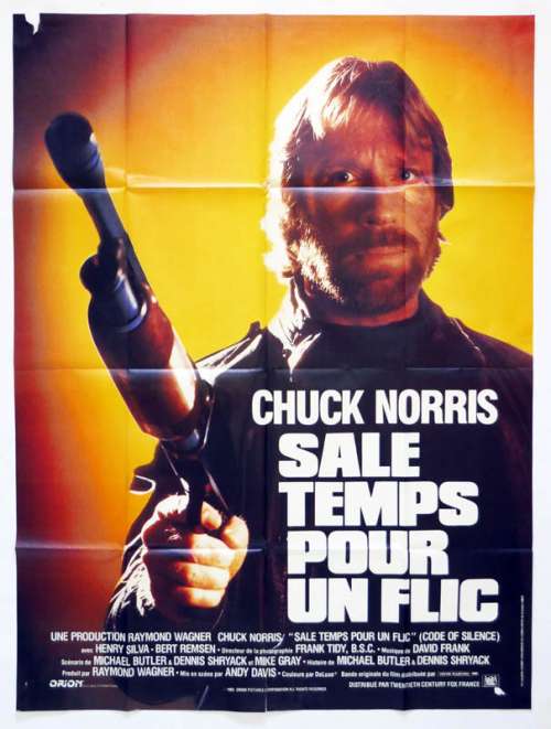Affiche de cinéma 120 x 160 du film SALE TEMPS POUR UN FLIC (1985), réalisé par Andrew Davis avec Chuck Norris, Henry Silva, Bert Remsen, Mike Genovese, Nathan Davis (plus sur Imdb)