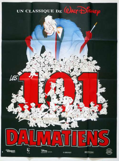 Affiche de cinéma 120 x 160 du film LES 101 DALMATIENS (1961), réalisé par Clyde Geronimi, Hamilton Luske, Wolfgang Reitherman avec Rod Taylor, J. Pat O'Malley, Betty Lou Gerson, Martha Wentworth, Ben Wright (plus sur Imdb)