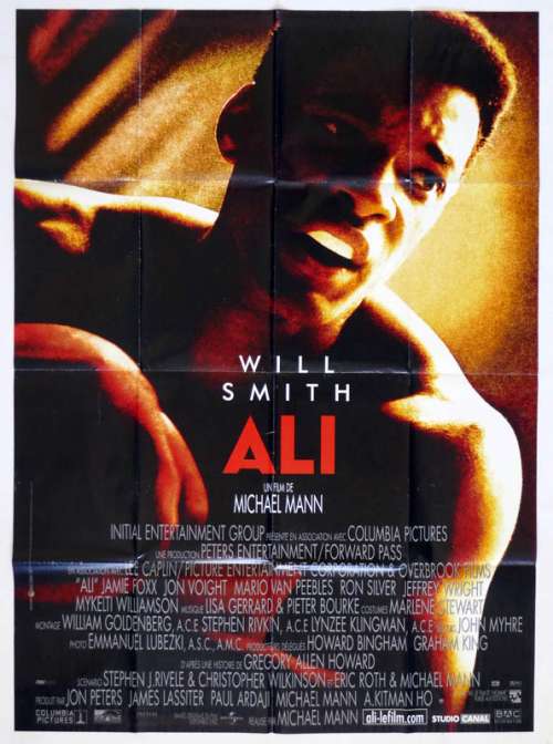 Affiche de cinéma 120 x 160 du film ALI (2001), réalisé par Michael Mann avec Will Smith, Jamie Foxx, Jon Voight, Mario Van Peebles, Ron Silver (plus sur Imdb)