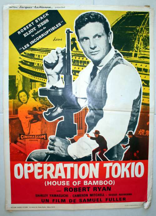 Affiche de cinéma 60 x 80 du film OPÉRATION TOKYO (1955), réalisé par Samuel Fuller avec Robert Ryan, Robert Stack, Shirley Yamaguchi, Cameron Mitchell, Brad Dexter, Sessue Hayakawa (plus sur Imdb)