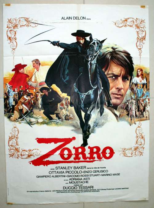 Affiche de cinéma 60 x 80 du film ZORRO (1975), réalisé par Duccio Tessari avec Alain Delon, Ottavia Piccolo, Enzo Cerusico, Moustache, Giacomo Rossi-Stuart, Giampiero Albertini (plus sur Imdb)