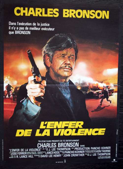 Affiches de cinéma 60 x 40 du film L'ENFER DE LA VIOLENCE (1984), réalisé par J. Lee Thompson avec Charles Bronson, Theresa Saldana, Joseph Maher, José Ferrer, René Enríquez, John Glover (plus sur Imdb)