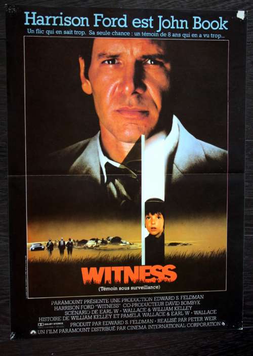 Affiches de cinéma 60 x 40 du film WITNESS (1985), réalisé par Peter Weir avec Harrison Ford, Kelly McGillis, Josef Sommer, Lukas Haas, Jan Rubes, Alexander Godunov (plus sur Imdb)