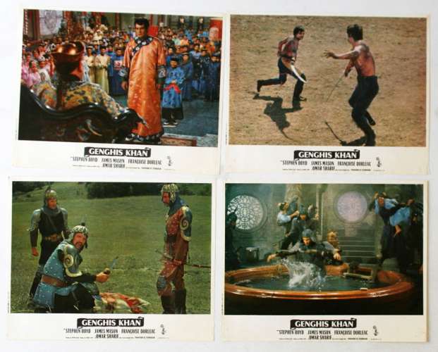 6 photos d'exploitation du film GENGHIS KHAN (1965), réalisé par Henry Levin avec Stephen Boyd, Omar Sharif, James Mason, Eli Wallach, Françoise Dorléac, Telly Savalas (plus sur Imdb)