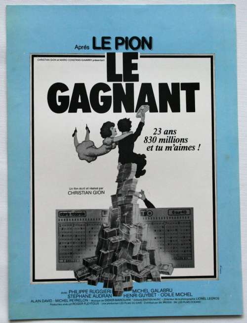Synopsis du film LA GAGNANT (1979), réalisé par Christian Gion avec Philippe Ruggieri, Michel Galabru, Stéphane Audran, Odile Michel, Henri Guybet, Alain David (plus sur Imdb)